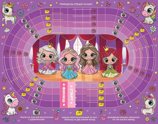 Игра настольная ходилака "Веселые гуляки 4 в 1" для девочек (ходка-раскраска)
