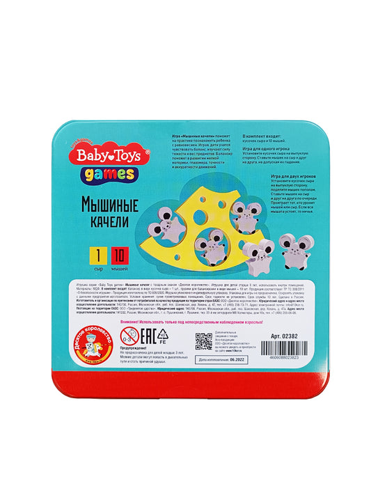 Игра деревянная Балансир "Мышиные качели" в жестяной коробочке серия "Игры для малышей"