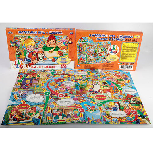 НАСТОЛЬНАЯ ИГРА-ХОДИЛКА "УМНЫЕ ИГРЫ" СОЮЗМУЛЬТФИЛЬМ. МАЛЫШ И КАРЛСОН В РУСС. КОР. в кор.20шт