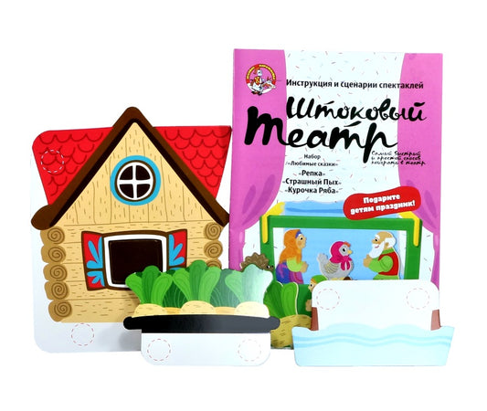 Театр штоковый. Набор кукол и декораций. Любимые сказки. «Репка», «Курочка Ряба», «Страшный Пых».