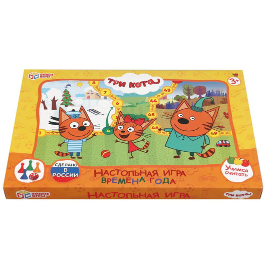 НАСТОЛЬНАЯ ИГРА-ХОДИЛКА "УМНЫЕ ИГРЫ" ВРЕМЕНА ГОДА.ТРИ КОТА НА РУССКОМ. КОР. в кор.20шт