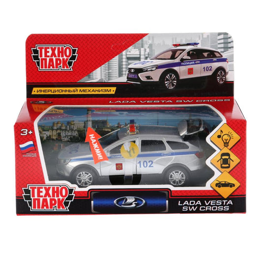 Машина металл свет-звук LADA VESTA SW CROSS ПОЛИЦИЯ 12см, открыв. двери 9748П Технопарк в кор.2*36шт