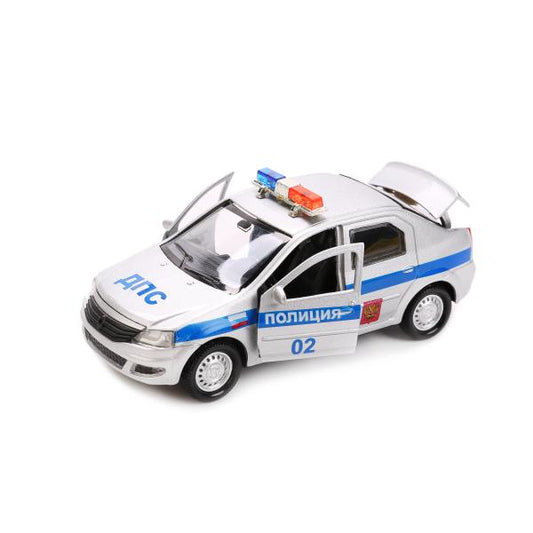 Машина металл RENAULT LOGAN ПОЛИТИЯ, 12 см, двери, сумка, ин.серебристый, кор. Технопарк в кор.2*36шт