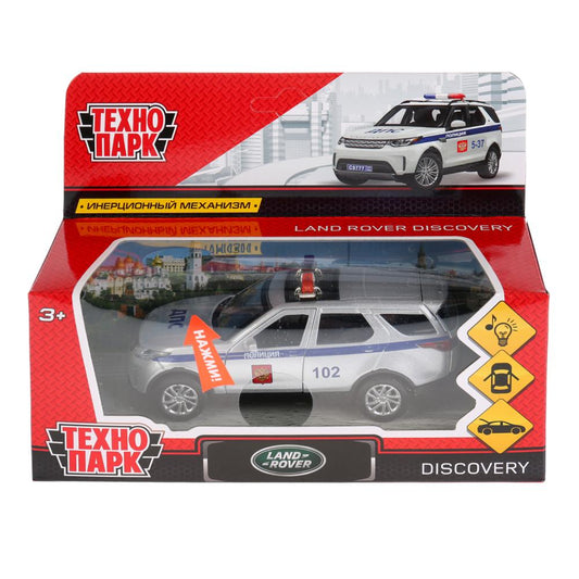 Машина металл светзвук LAND ROVER DISCOVERY ПОЛИЦИЯ 12 см, дв,баг, ин, кор. Технопарк в кор.2*36шт