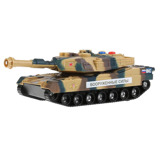 Машина на бат. свет+звук "БОЕВОЙ ТАНК", длина 14,5см, пластик, инерц. в кор. Технопарк в кор.2*36шт