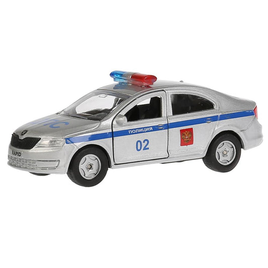 Машина металл SKODA Rapid полиция 12см, открыв двери и багажник, инерц. в кор Технопарк в кор.2*24шт