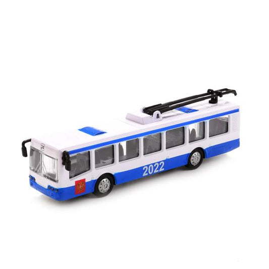 ТРОЛЛЕЙБУС «ТЕХНОПАРК» МЕТАЛЛ. ИНЕРЦ. 16,5СМ, ОТКРЫВ. ДВЕРИ В РУСС. КОР. в кор.2*24шт
