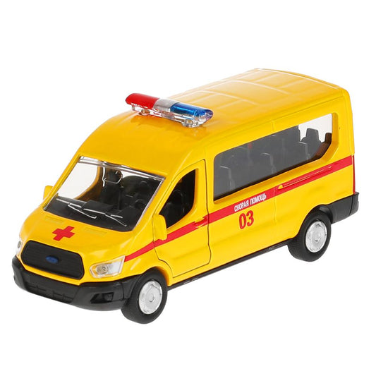 Машина металл FORD Transit скорая 12см, открывающаяся. двери, инерц. в кор. Технопарк в кор.2*24шт