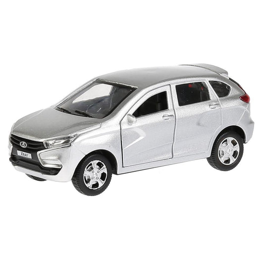 Машина металл LADA XRAY длина 12 см, двери, багажник, инерц, серебристый, кор. Технопарк в кор.2*36шт