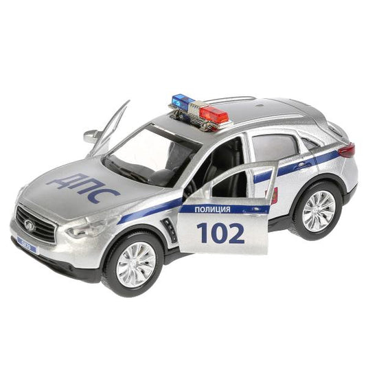 Машина металл свет-звук "INFINITI QX70 ПОЛИТИЯ" 12см, открывающаяся. двери, инерц., Технопарк в кор.2*36шт