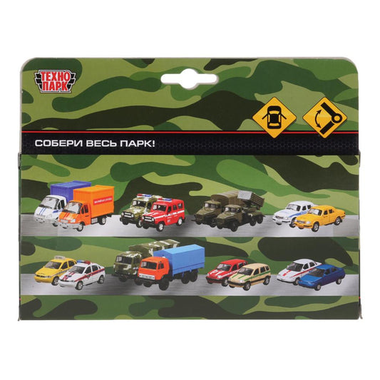 НАБОР ИЗ 2-Х МАШИН «ТЕХНОПАРК» МЕТАЛЛ. ГАЗЕЛЬ ЭВАКУАТОР 12,5СМ+ УАЗ ПАТРИОТ 7,5СМВ КОР в кор.2*24наб