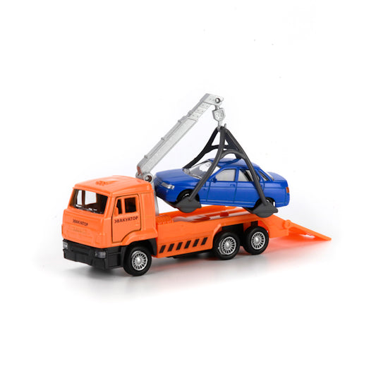 Машина металл КАМАЗ ЭВАКУАТОР, 12 см,дв.,подв.дет.,инер.+машина 7,5 см, кор. Технопарк в кор.2*24шт