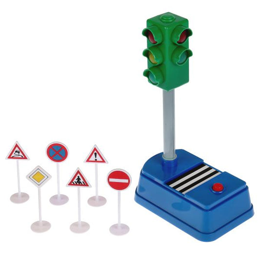 Светофор на батарейках свет+звук 21см, дорожные знаки на русском. кор. Технопарк в кор.2*12шт