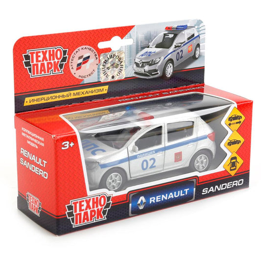 Машина металл RENAULT Sandero ПОЛИЦИЯ, 12 см, двери, багаж., инерц., кор. Технопарк в кор.2*24шт