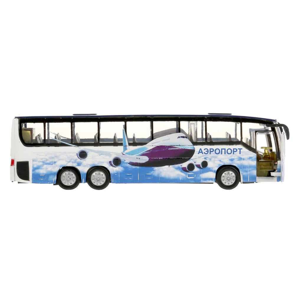 АВТОБУС "ТЕХНОПАРК" АЭРОПОРТ, МЕТАЛЛ. ИНЕРЦ. СВЕТ+ЗВУК ОТКРЫВ ДВЕРИ В РУСС. КОР. 18,5СМ в кор.2*24шт