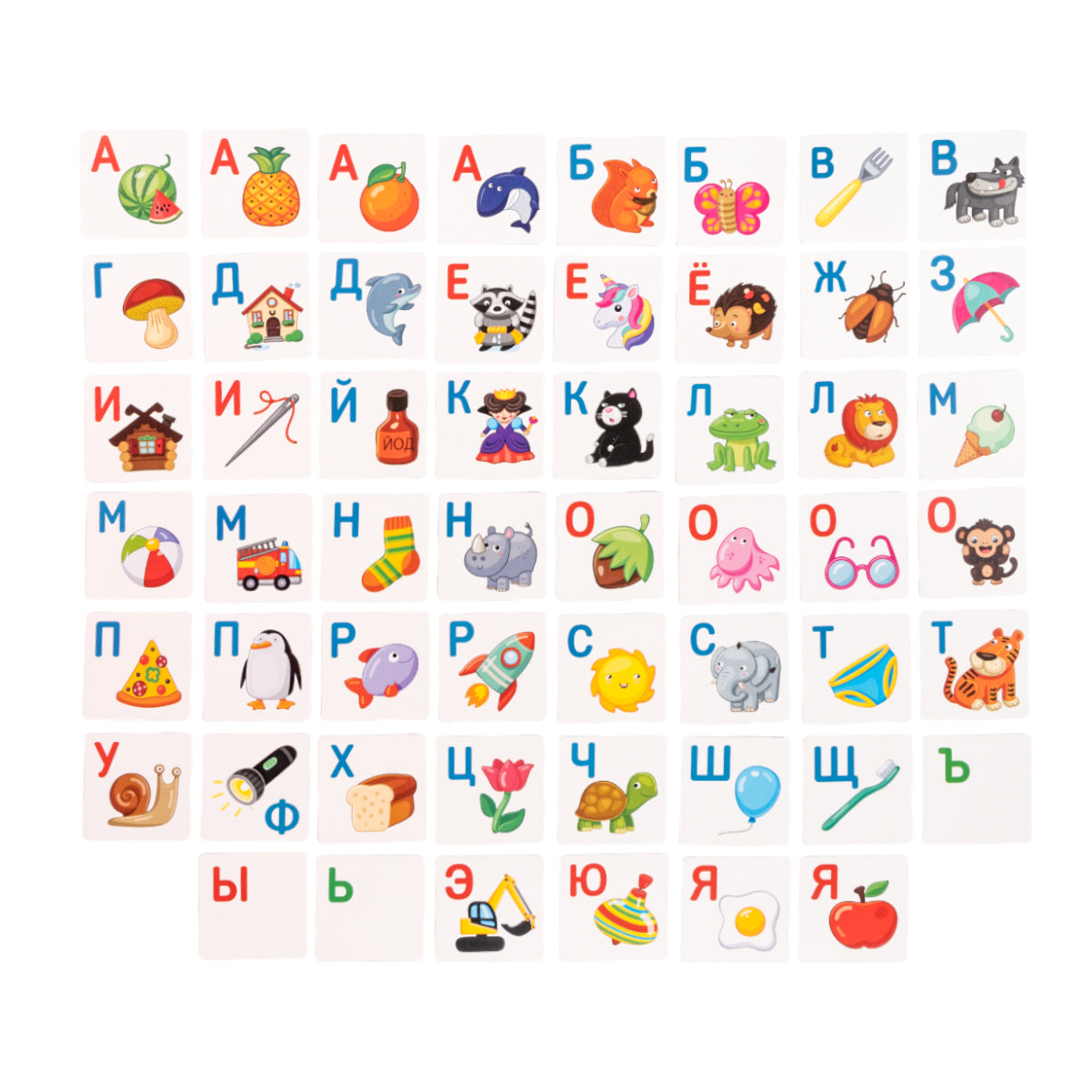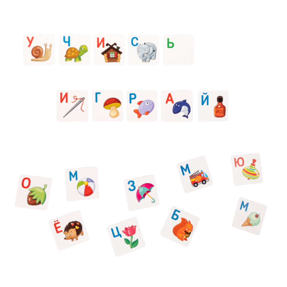 Азбука. "Учим буквы"Состав: Карточки из картона - 54 шт. (4,5 х 4,5 см). Для детей старше 3 лет.