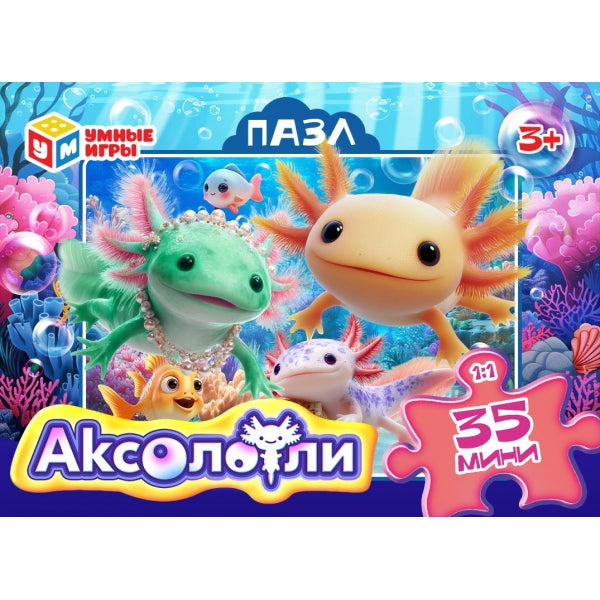 Аксолотли. Пазлы в коробке 35 деталей. 90х65х25 мм. Умные игры в уп.32шт в кор.8уп