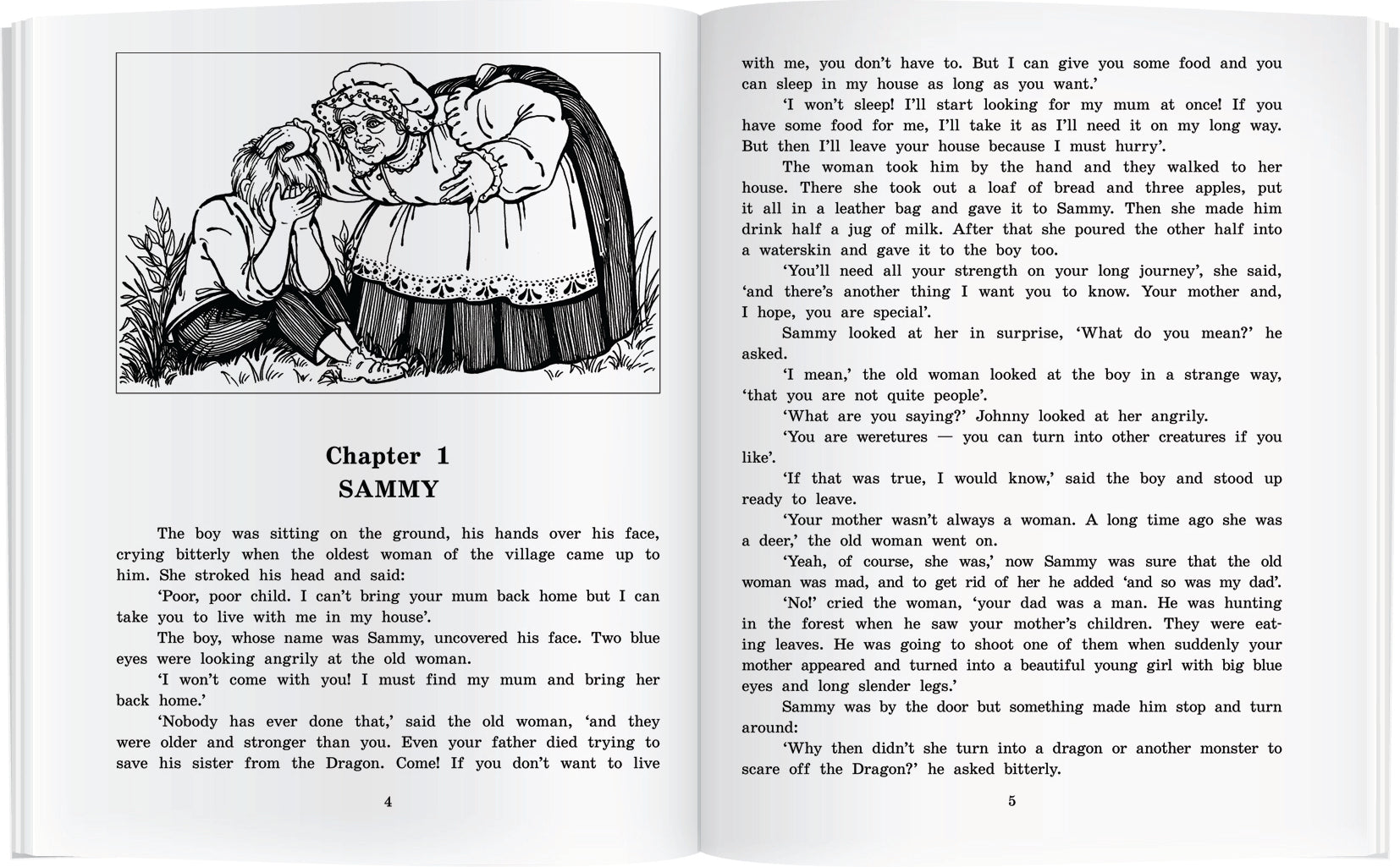 Handling time: 24 days Книга представляет собой увлекательную повесть о путешествии десятилетнего мальчика Сэмми. Вооружившись заклинанием, он отправляется на поиски своей матери, похищенной драконом. Его путь к дракону полон опасностей и невероятных приключений. Дар Сэмми превращаться в разных животных даёт ему возможность узнать их мир изнутри и понять, что, точно так же как человек, животные умеют дружить и любить.