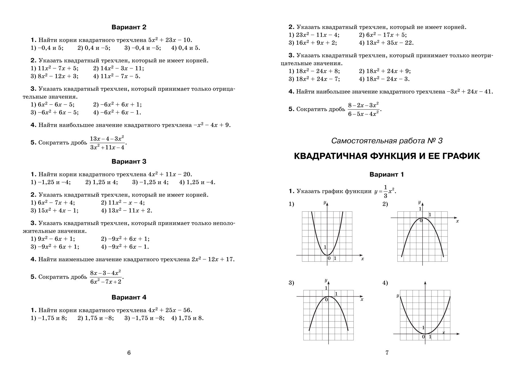 Пособие содержит 18 самостоятельных и 6 контрольных работ по всем темам, изучаемым в 9 классе.