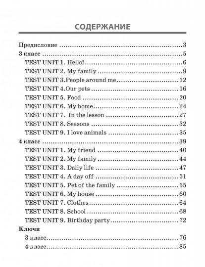 Пособие содержит разноуровневые тесты по английскому языку для учащихся 3 и 4 классов. Материалы тестов охватывают все лексические и грамматические темы, изучаемые на данном этапе обучения в последовательности, которая полностью соответствует школьной программе. Книга представляет собой рабочую тетрадь, в конце которой приводятся ключи с ответами. Таким образом, издание может использоваться как на уроках и факультативах, так и для самостоятельной работы дома.