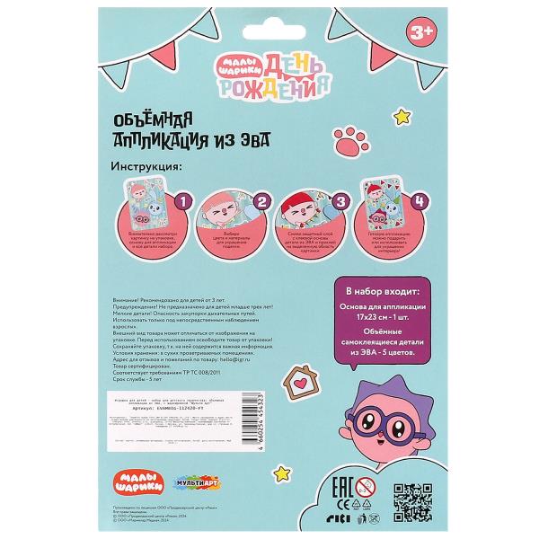 Игрушка "Аппликация объемная из Ева 17*23 см Малышарики МУЛЬТИ АРТ в кор.100шт". Размер: 0,025.