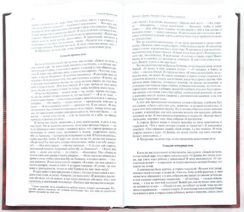 В двух томах публикуется полное собрание знаменитых арабских сказок, известных под названием "Книга тысячи и одной ночи" - блистательного литературного памятника письменного и фольклорного наследия средневекового Востока. В Приложение вошли сказки из более позднего собрания арабских сказок, которые исторически не входят в классическую "Книгу тысячи и одной ночи".В первый том вошли сказки, которые рассказывала Шахразада с 1 по 466 ночь.Издание снабжено многочисленными иллюстрациями художников XIX века.Во второй том вошли сказки, которые рассказывала Шахразада с 467 по 1001 ночь.В Приложении даны сказки из более позднего собрания арабских сказок, которые исторически не входят в классическую "Книгу тысячи и одной ночи", - "Рассказ про Али-Баба и сорок разбойников…", "Рассказ про Ала ад-Дина и волшебный светильник", "Халиф на час…". Издание снабжено многочисленными иллюстрациями художников XIX века.