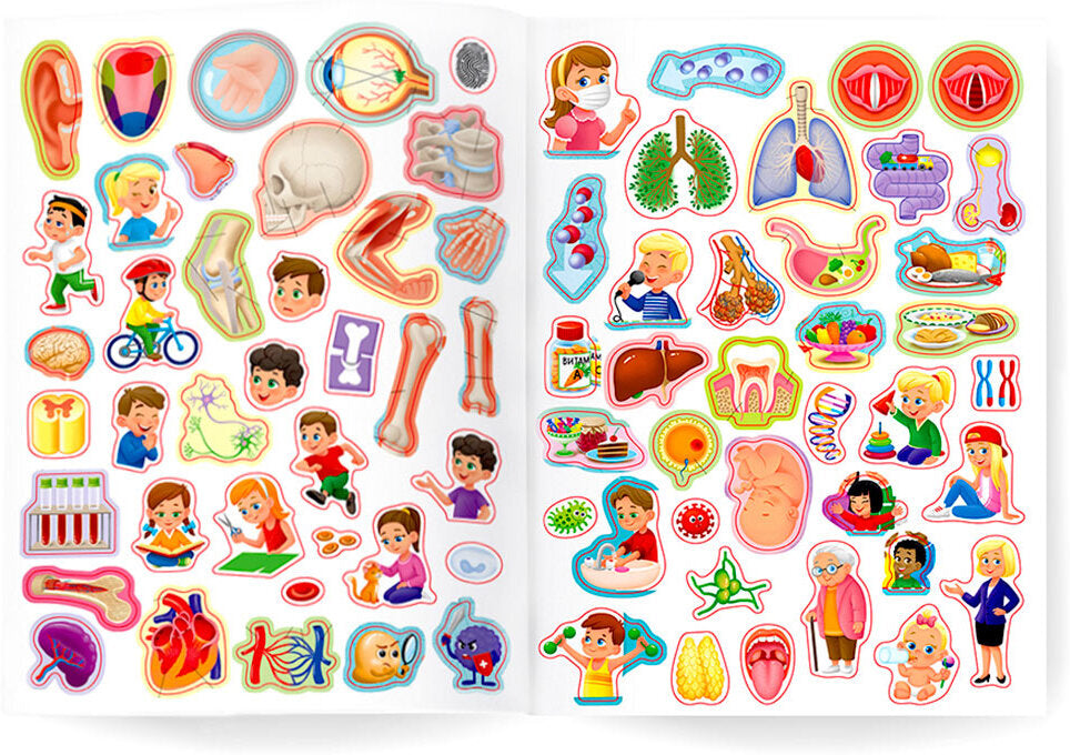 Атлас с наклейками. Тело человека. 21х29,7 см. 16 стр. ГЕОДОМ