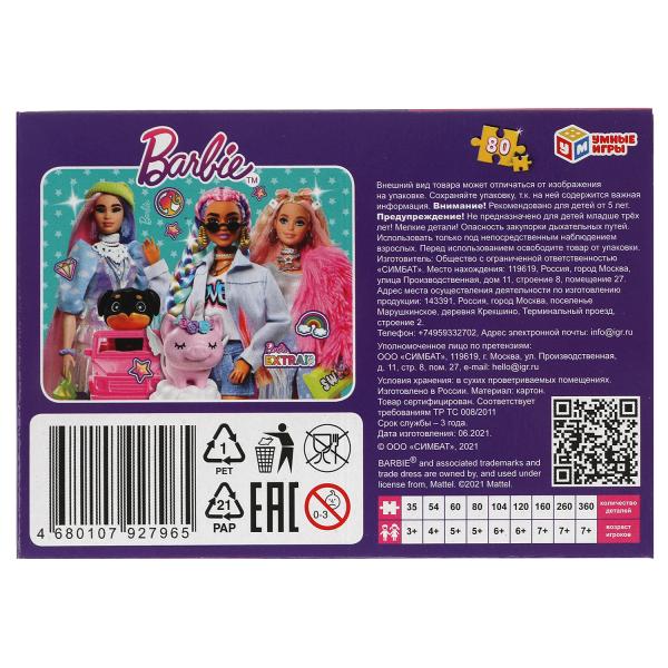 Барби. Пазлы классические в коробке. Пазл 80 деталей. Умные игры уп.16шт в кор.128шт