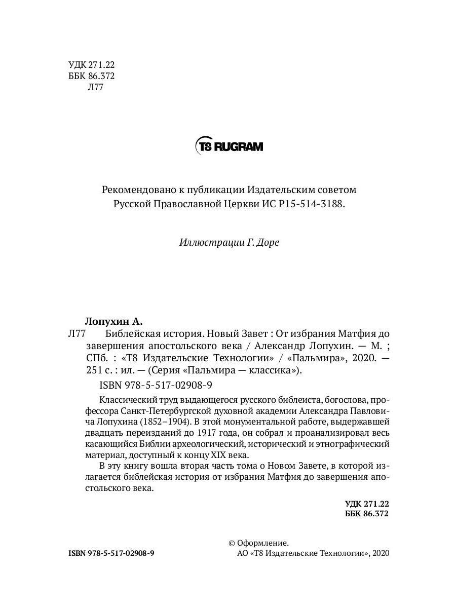 Handling time: 19 days Автор: Лопухин Александр, «Библейская История. Новый Завет. От избрания Матфия до завершения апостольского века»: Классический труд выдающегося русского библеиста, богослова, профессора Санкт-Петербургской духовной академии Александра Павловича Лопухина (1852-1904). В этой монументальной работе, выдержавшей двадцать переизданий до 1917 года, он собрал и проанализировал весь касающийся Библии археологический, исторический и этнографический материал, доступный к концу XIX века. В эту книгу вошла вторая часть тома о Новом Завете, в которой излагается библейская история от избрания Матфия до завершения апостольского века.