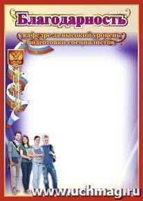 Благодарность кафедре за высокий уровень подготовки специалистов.Формат: А4.Тип бумаги: мелованный картон.