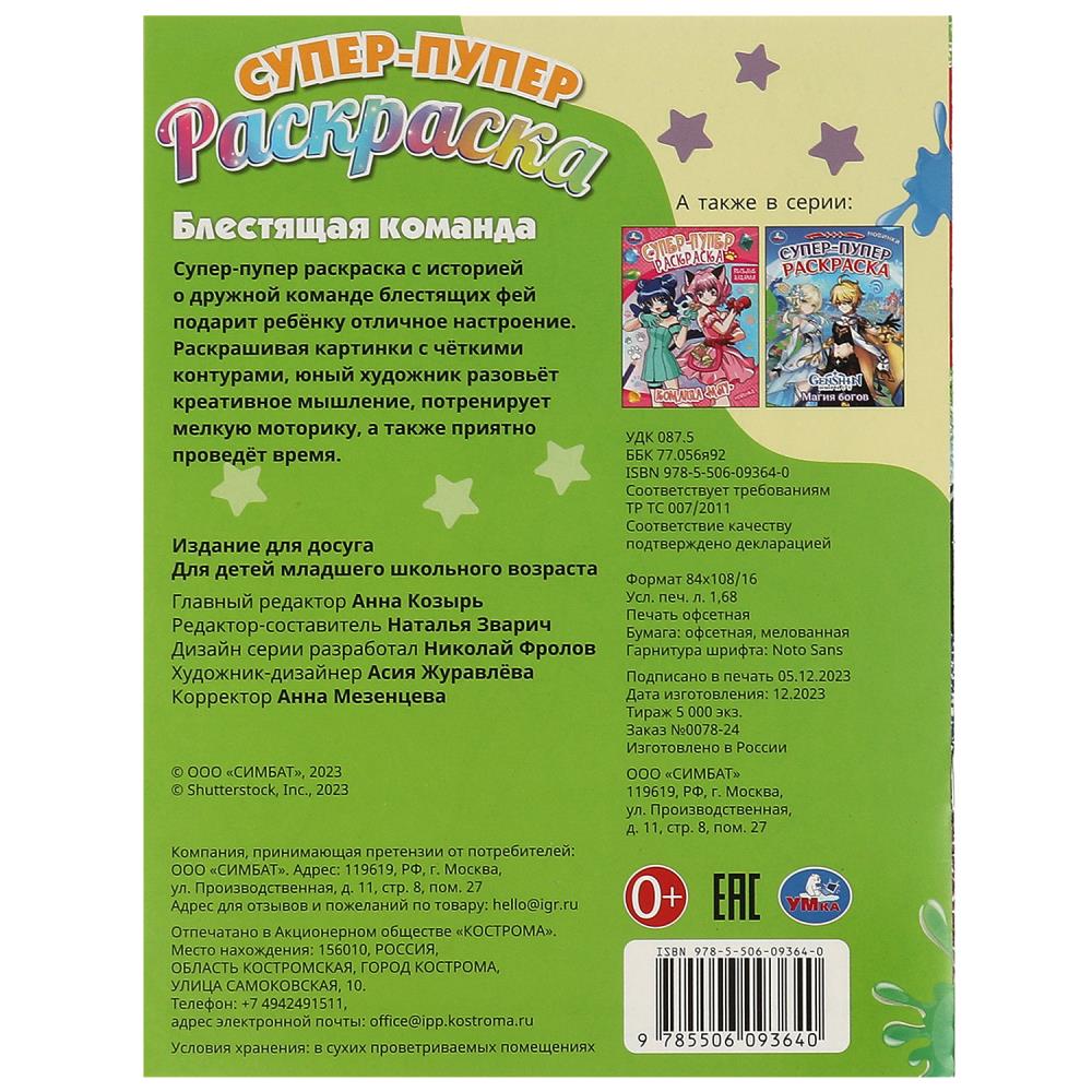 Книга "Блестящая команда. Супер-пупер раскраска. 195х255 мм. Крепка. 16 стр. Умка в кор.50шт". Издательство: Умка.