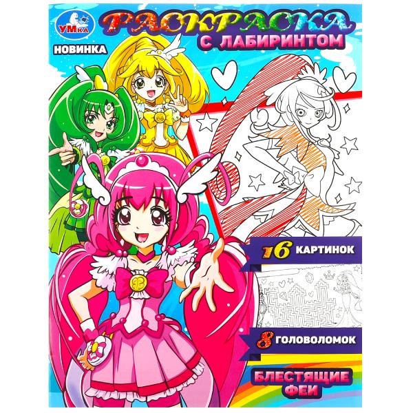 Блестящие феи. Раскраска с лабиринтом.195х255 мм. Скрепка. 16 стр. Умка в кор.50шт