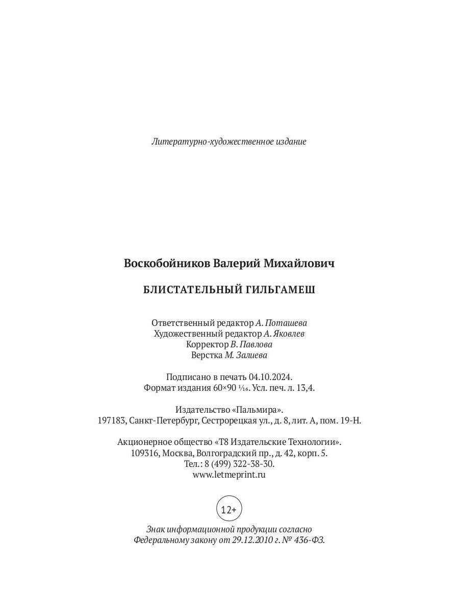 Handling time: 19 days Автор: Воскобойников В.М., «Блистательный Гильгамеш: повесть»: «Блистательный Гильгамеш» — повесть, написанная известным детским писателем Валерием Воскобойниковым по мотивам шумеро-аккадского эпоса о Гильгамеше, правителе I династии шумерского города Урук (конец XXVII — начало XXVI века до н. э.). Читатель узнает о славных подвигах Гильгамеша и его необычайных странствиях по подземному миру в поисках разгадки тайны жизни и смерти…