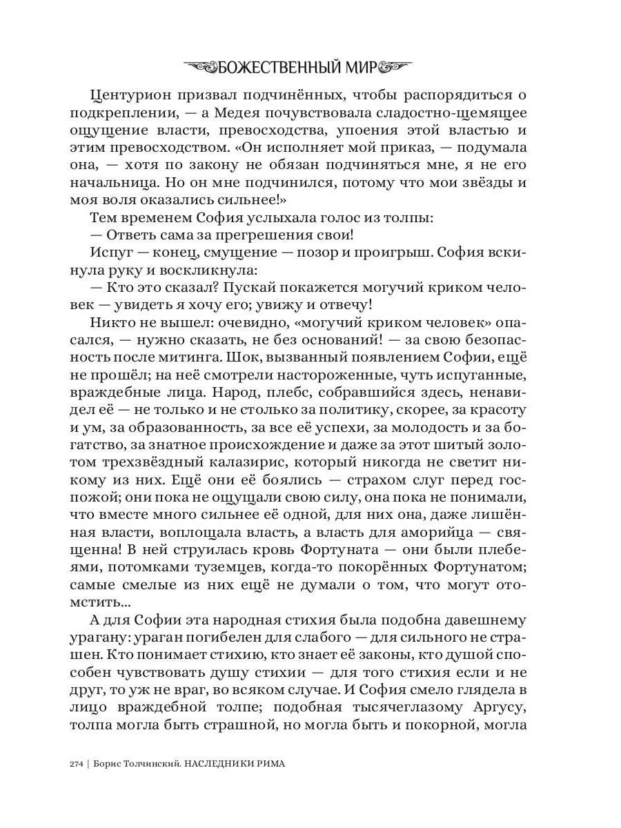 Handling time: 19 days "Божественный мир" - цикл остросюжетных романов от учёного-политолога, писателя и публициста. Наследники Рима, Египта и Греции вновь правят миром в многослойной альтернативной реальности, где каждый элемент связан с другими в единую систему. Изощрённые политические интриги и многоходовки. Жёсткая психологическая драма о власти, любви и свободе, о том, чем приходится за них платить. О вборе между семьёй и долгом, политикой и любовью, мирскими страстями и тайным знанием?Мир, в котором дух античности сочетается с высочайшими технологиями, а патриотизм и честь - с вольными нравами и рабством. Аватарианство, новая имперская религия, пришедшая на смену древнему язычеству и христианству, жёстко утверждает гендерное равенство и при этом насаждает вопиющее неравенство культур, требует от "варваров" покорности. Но все ли из них готовы покориться? И всякая ли битва за свободу на самом деле приближает к ней?Второй роман цикла.