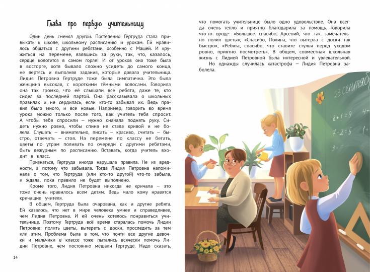 Любые серьёзные изменения - это стресс, даже если речь идёт о позитивных переменах. Как помочь ребёнку мягко адаптироваться к новому статусу - не детсадовца, а уже школьника? Ольга Королева, практикующий психолог, придумала историю о девочке Гертруде, которая, как и многие дети, радуется и тревожится накануне 1 Сентября, заводит новых друзей в школе, выстраивает отношения с учителями, огорчается из-за оценок, переживает первую влюблённость и учится быть честной и смелой.Через знакомство с художественными историями можно обсудить с ребёнком сложные темы и найти ответы на трудные вопросы.
