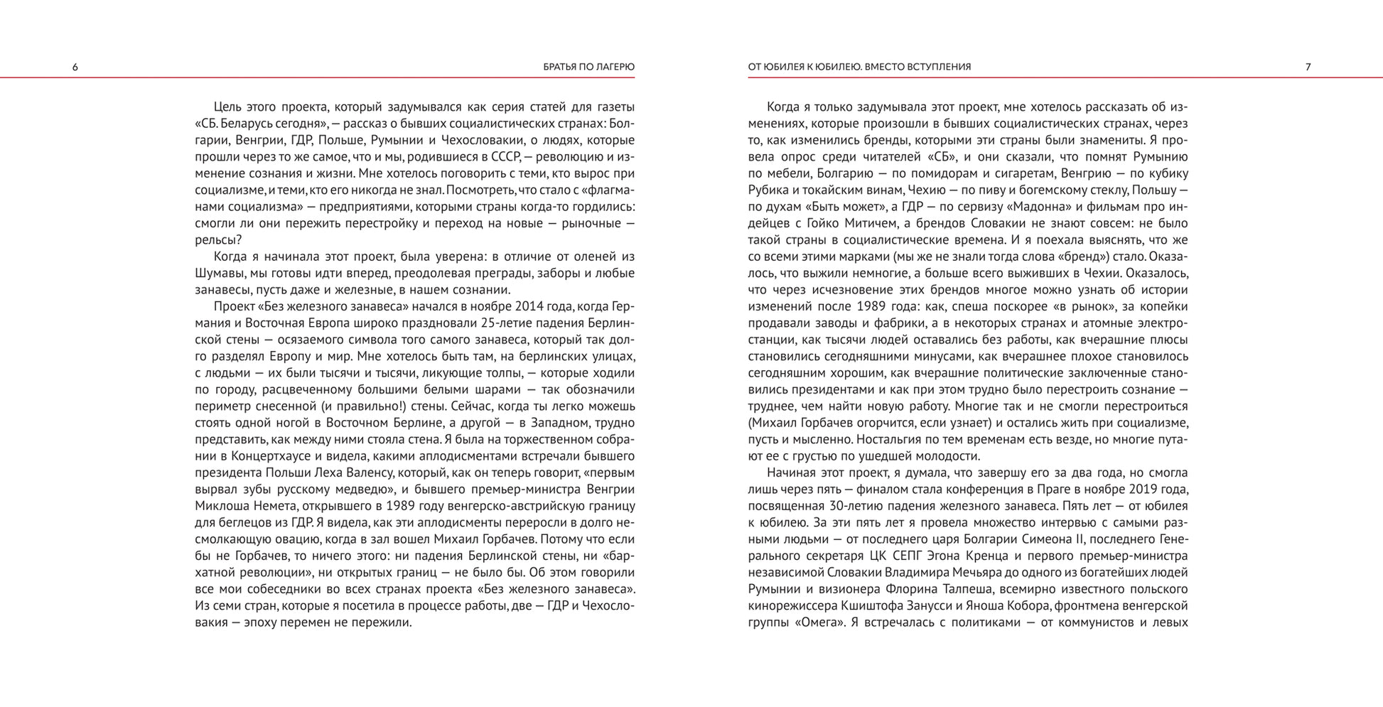 В каждой из этих поездок автор встречалась с самыми разными людьми: бывшими руководителями государств и правительств, бизнесменами, экономистами, артистами и художниками, учителями и молодежью. Среди самых известных собеседников - последний Генеральный секретарь ЦК СЕПГ Эгон Кренц, первый премьер-министр независимой Словакии Владимир Мечьяр, последний царь Болгарии Симеон II, бывший член Политбюро ЦК ПОРП Станислав Чосек, один из основателей профсоюзного движения "Солидарность" Адам Михник, известный кинорежиссер Кшиштоф Занусси, знаменитый рок-певец Янош Кобор и многие другие.