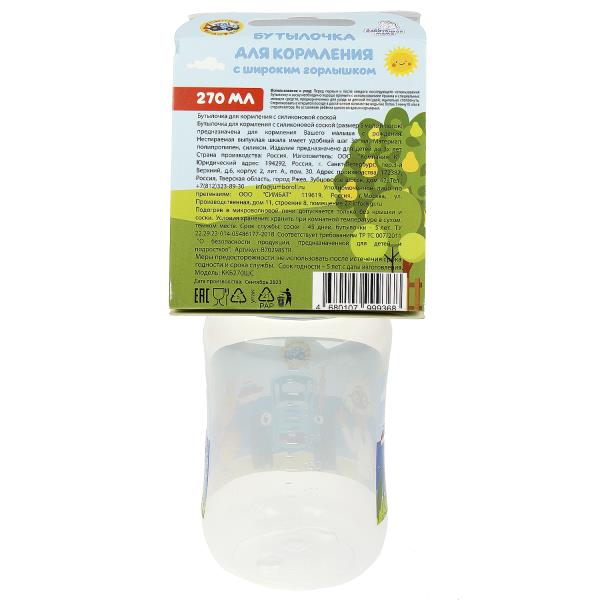 Бутылочка для корм., шир. г СИНИЙ ТРАКТОР 270 мл, сил. с., б/р. Умка в кор.12шт