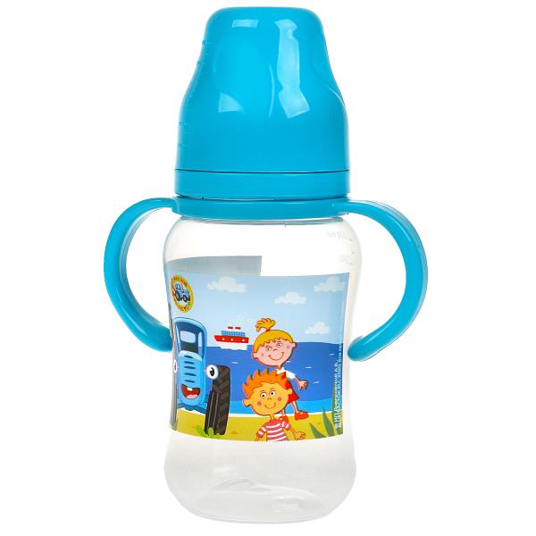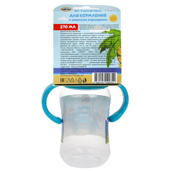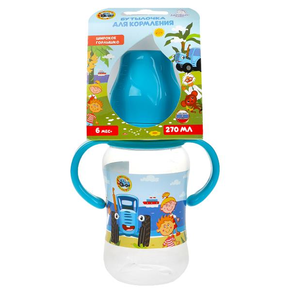 Бутылочка для корм., шир. г., СИНИЙ ТРАКТОР 270 мл, сил. с, с руч. Умка в кор.12шт