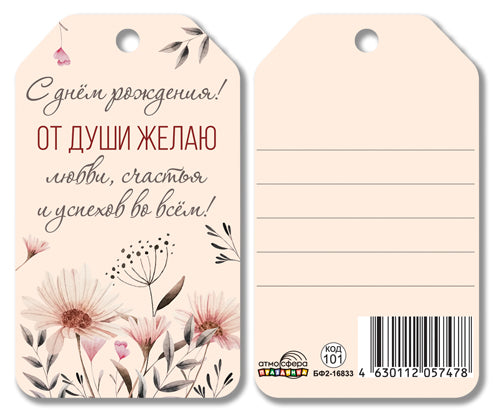 Хотите незаметно, но огненно и трогательно поздравить или убить? Устали от конвертов и открыток? Бирка - открытка мини-формата с перфорацией - отличное решение-сюрприз для такого момента. Ее можно вложить в подарок, прикрепив к букету или пакету. Она не помнится!