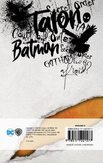 Handling time: 14 days Суд Сов — зловещее тайное общество, существовавшее в Готэме с XVII века и состоявшее из богатых и влиятельных семей Готэма. С самого начала своего существования Суд пытался захватить власть над городом, устраняя врагов при помощи профессиональных наемных убийц, известных под именем Коготь. Брюс Уэйн привлек внимание Суда, когда объявил о планах вдохнуть новую жизнь в Готэм, что угрожало их контролю. Они приговорили его к смерти, чем привлекли к себе внимание Бэтмена. Несмотря на понесенное поражение, Суд Сов продолжает сражаться, чтобы вновь обрести контроль над преступным миром Готэма.И эта борьба длится не один век…