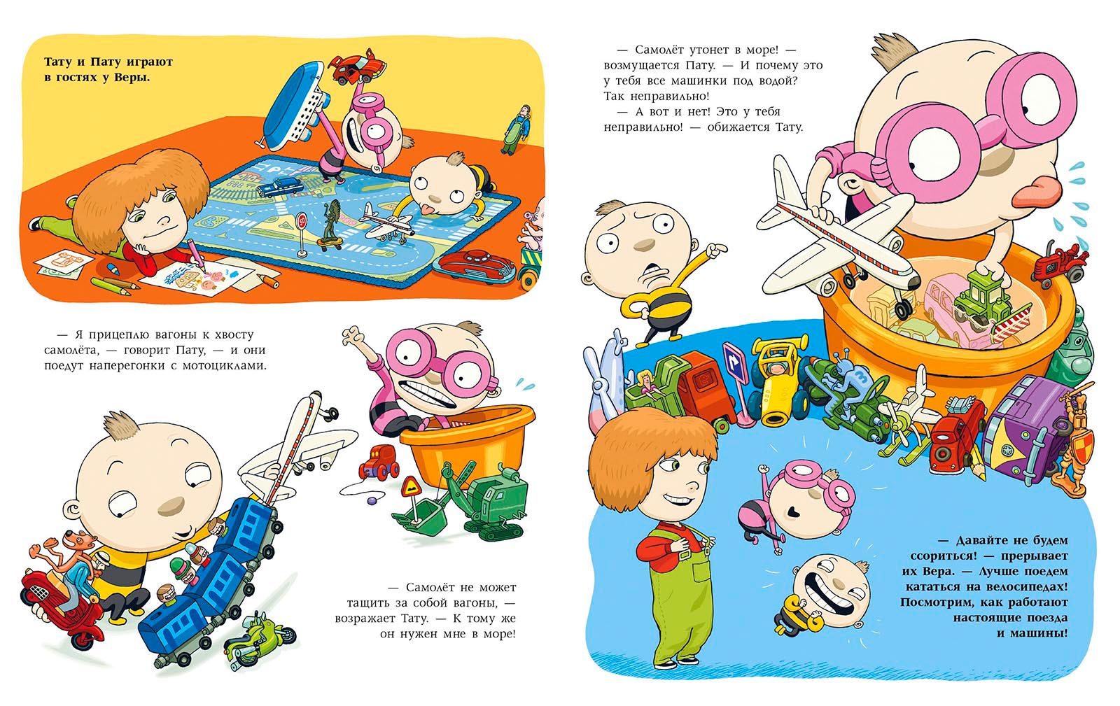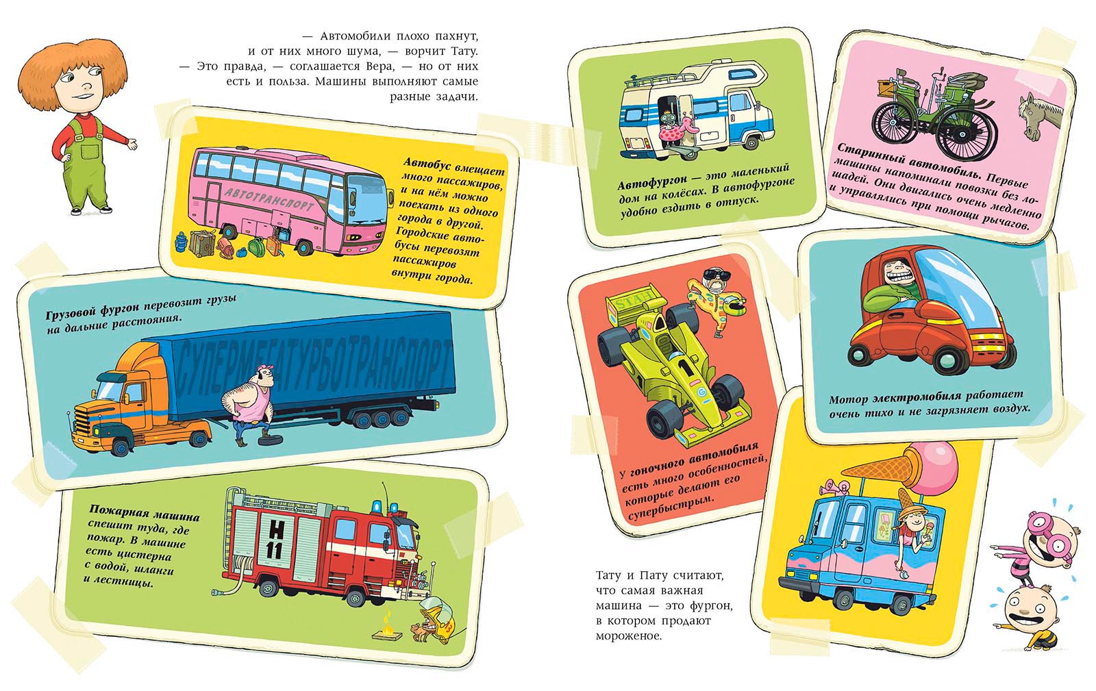 Handling time: 24 days Что мы знаем о машинах? Тату и Пату играют в машинки: у Пату самолет тянет за собой вагоны, а у Тату машинки ушли под воду. А бывает ли такое в жизни? Чтобы это проверить, Вера предлагает друзьям сесть на велосипеды и отправиться в город. Прогулка превращается в настоящую экскурсию! Братья наблюдают, как едут поезда и автомобили, летают самолеты, ходят по воде корабли. И даже как работает сельскохозяйственная техника! А вернувшись домой, трое друзей изобретают идеальный вид транспорта.