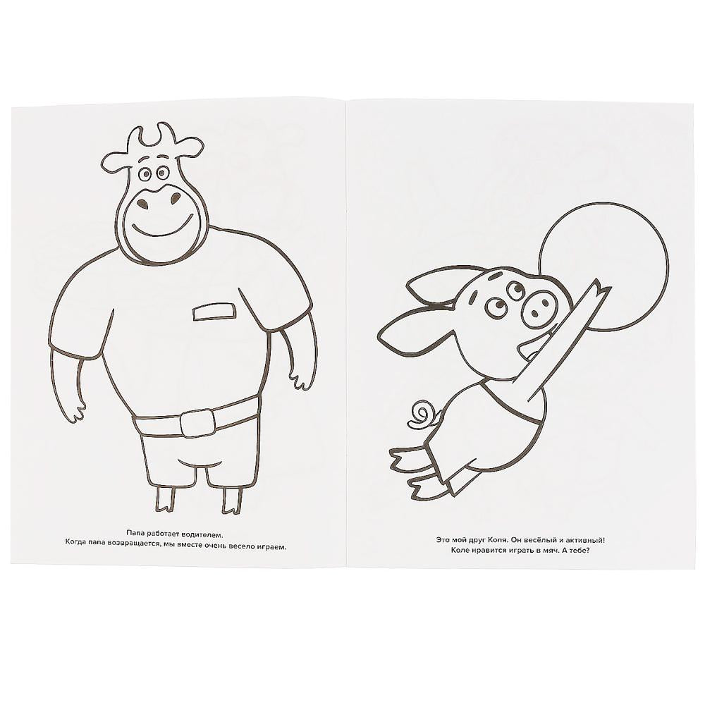 Малыш будет рад повстречаться на страницах раскраски с героями любимого мультфильма «Оранжевая корова». В ней вы найдёте красивые картинки с чёткими контурами и описания к ним. Раскраску удобно брать с собой в дорогу.