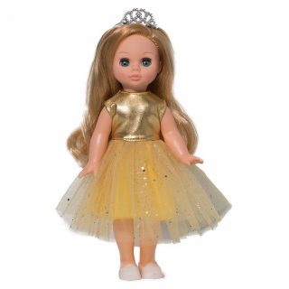Handling time: 14 days Кукла Эля Праздничная-1 от российского производителя игрушек «Весна» -- очень милая девочка! У неё красивые глазки, которые открываются, когда кукла стоит или сидит, и закрываются, когда она лежит. Верхние веки обрамлены длинными и объёмными ресничками. Кукла обладает роскошными светло-русыми волосами, из которых можно придумывать самые разнообразные причёски! Эля одета в шикарное золотистое платье с пышной сверкающей юбкой, на ножках у неё – чудесные белые балетки.Высота игрушки составляет 30 см. Изделие изготовлено из пластмассы. Рекомендованный возраст: 3 года +