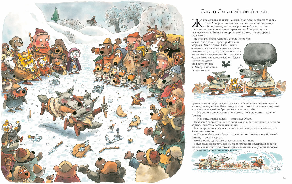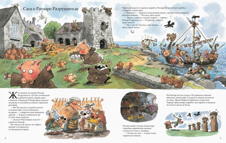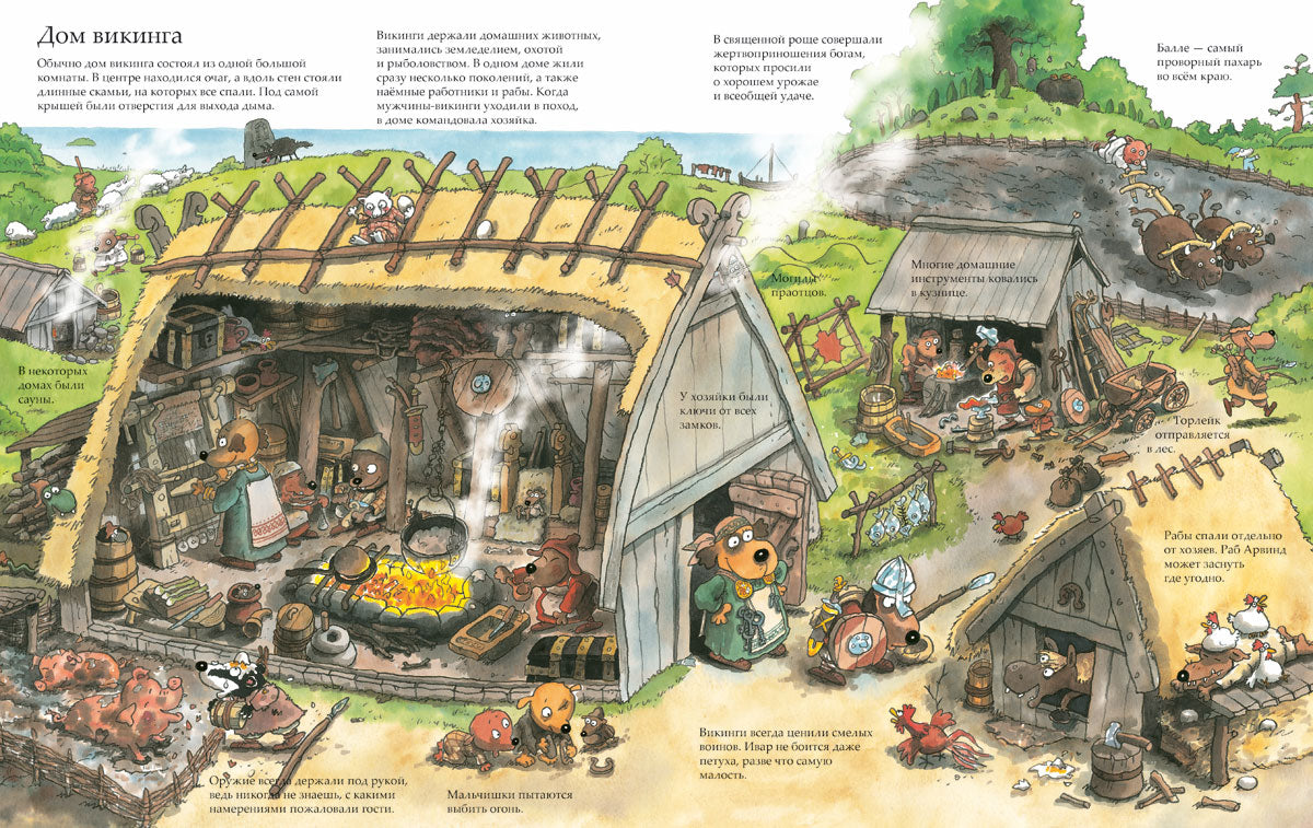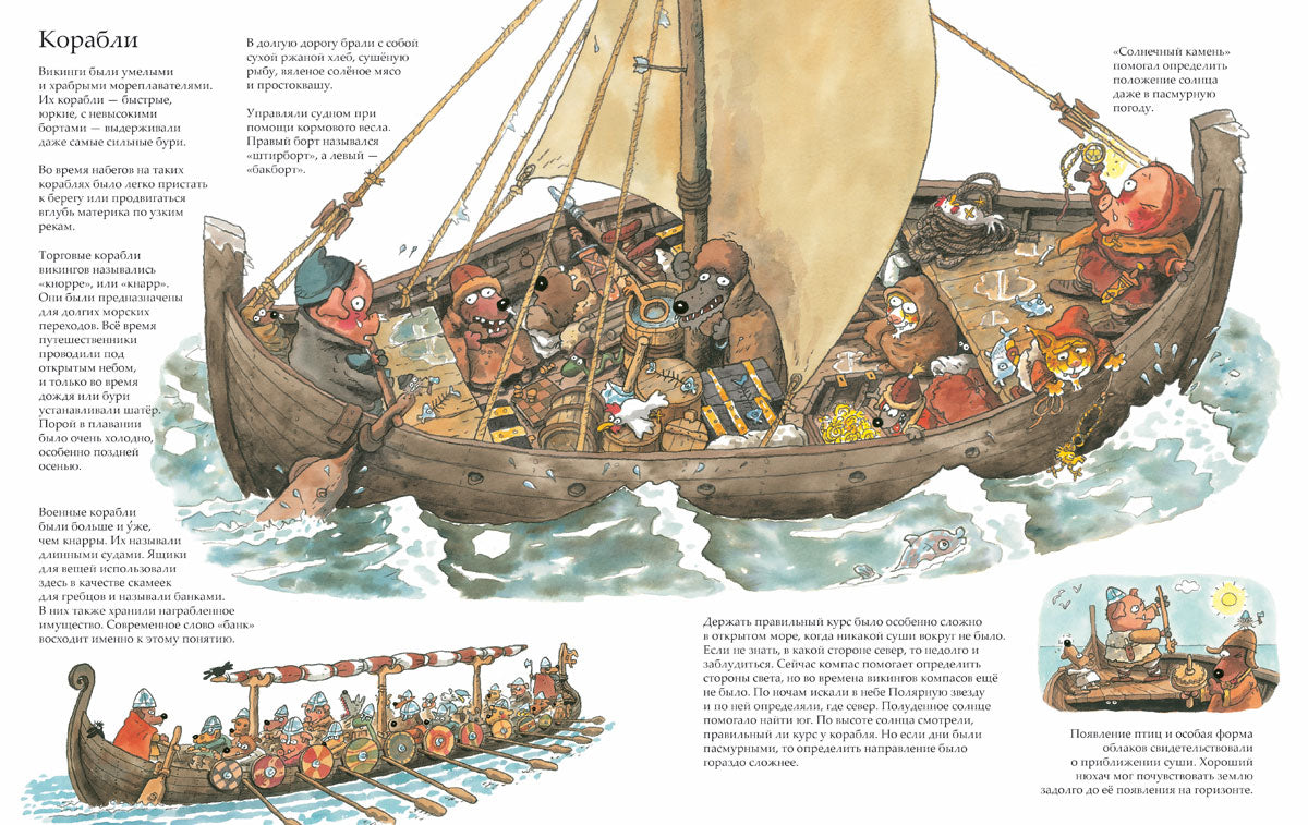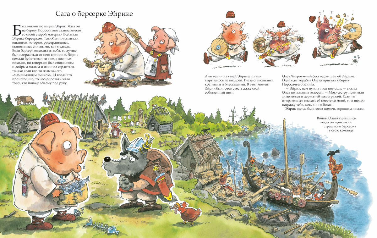 Помимо уморительно смешных сказок-саг в книгу включены описания кораблей, жилищ и городов викингов, перечень скандинавских богов, карта известного викингам обитаемого мира и примерная схема мироустройства по-викингски.