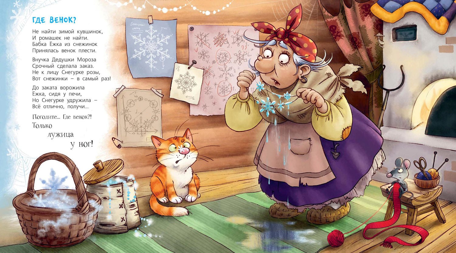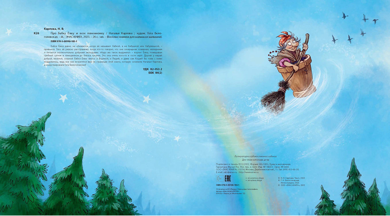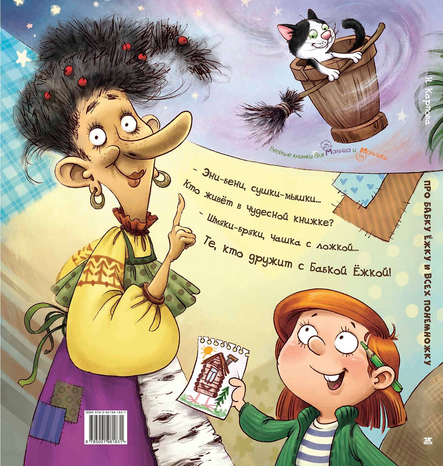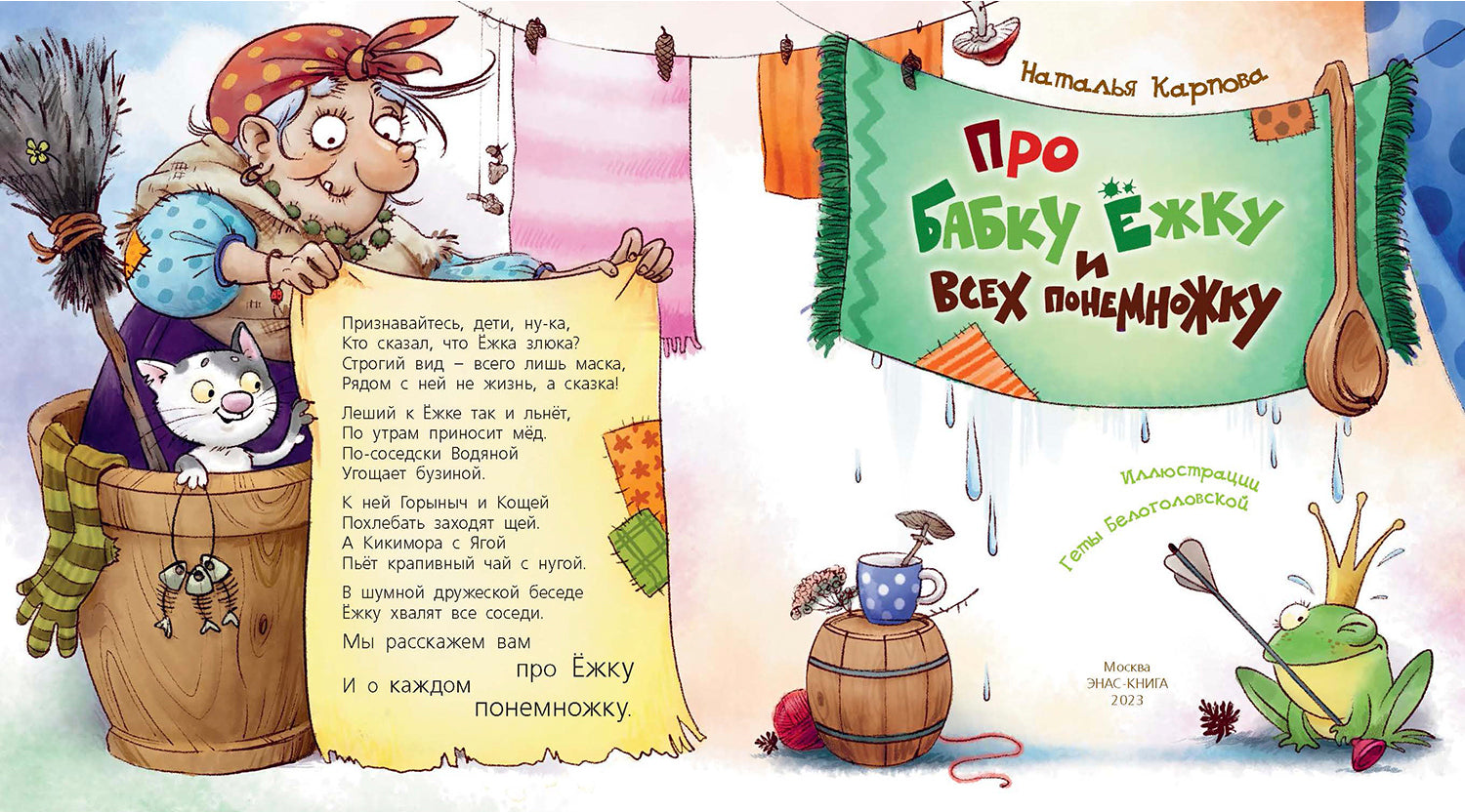 Бабка Ёжка давно не обижается, когда её называют бабкой, а не бабушкой или бабуленькой, – привыкла. Зато её ужасно расстраивает, когда кто-то говорит, что она зловредная, коварная, нелюдимая и питается исключительно добрыми молодцами. «Надо же такое выдумать!» – ворчит Ёжка, помешивая грибной супчик в начищенном до блеска чугунке. Это она опять кого-то в гости ждёт. Друзей у нашей доброй, весёлой, озорной Бабки Ёжки много: и Водяной, и Леший, и даже сам Кощей! Вы тоже с ними подружитесь, ведь все они встретятся вам на страницах этой книги, которую сочинила Наталья Карпова, а иллюстрировала Гета Белоголовская!