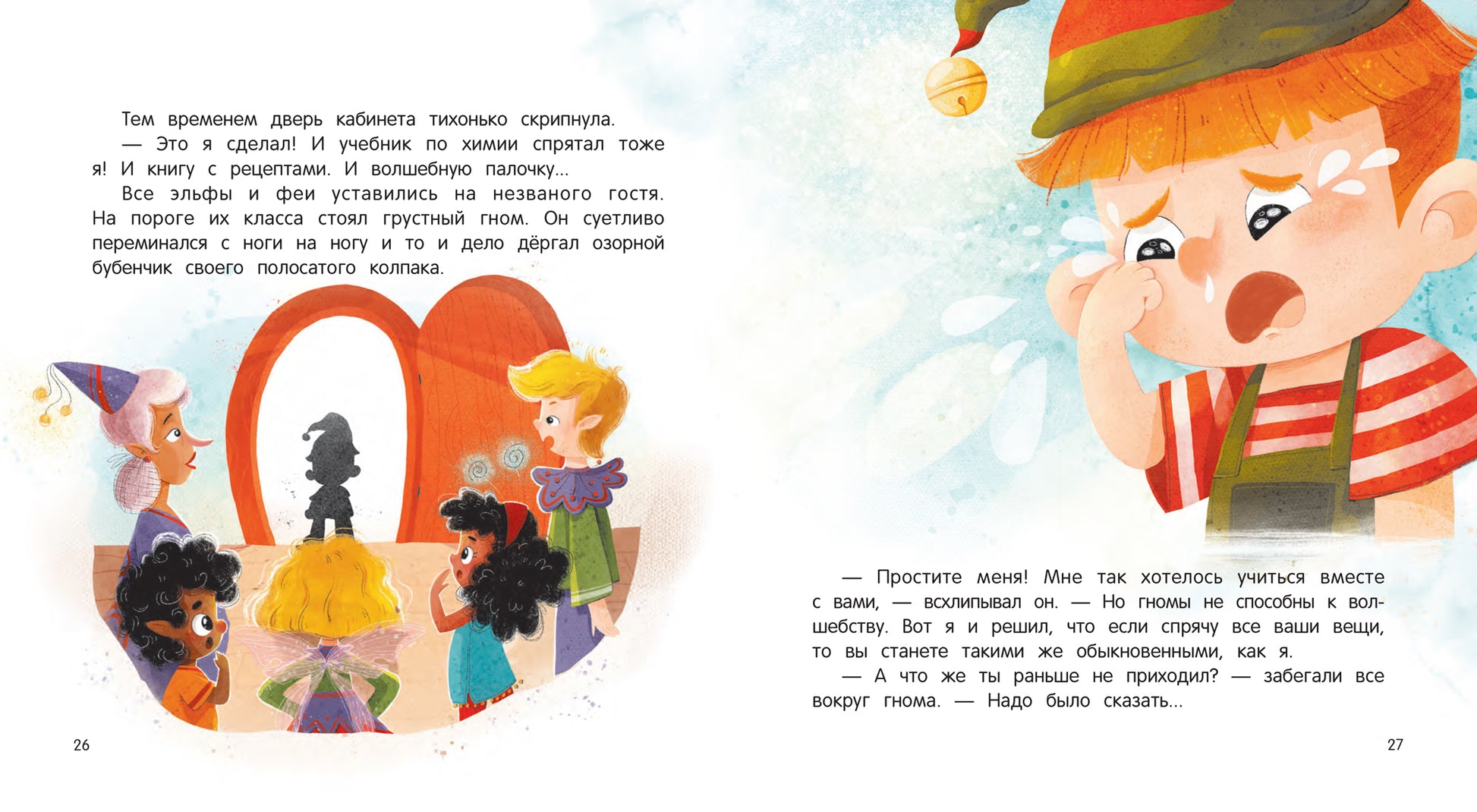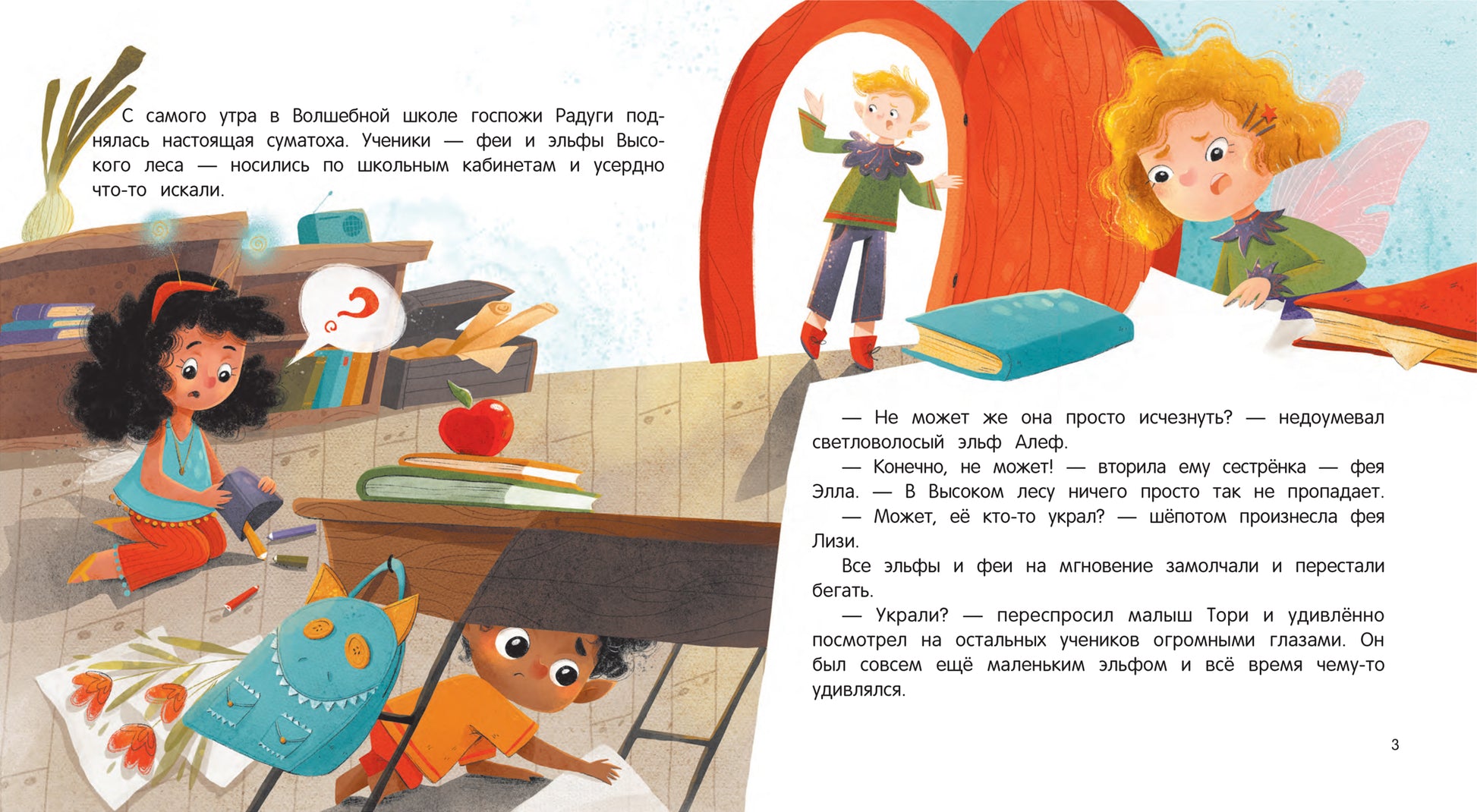 С самого утра в Волшебной школе госпожи Радуги поднялась настоящая суматоха. Ученики - феи и эльфы Высокого леса - усердно что-то искали. Расстроенные малыши заглядывали под каждую парту, смотрели во всех шкафах и комодах. Но не могли найти пропажу. Вот только почему они не воспользовались магией? Ведь при помощи волшебства можно сделать всё что угодно. Не правда ли?