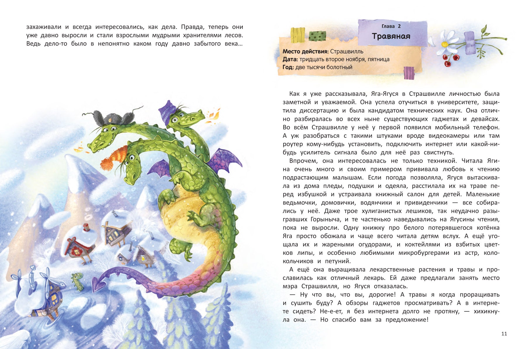 Героиня нашей истории Яга-Ягуся - личность заметная и уважаемая во всём сказочном Страшвилле. Она училась в университете, защитила диссертацию и стала кандидатом технических наук. Яга отлично разбирается во всех гаджетах и девайсах. За творческую натуру, находчивость и образованность жители Страшвилля её обожали.