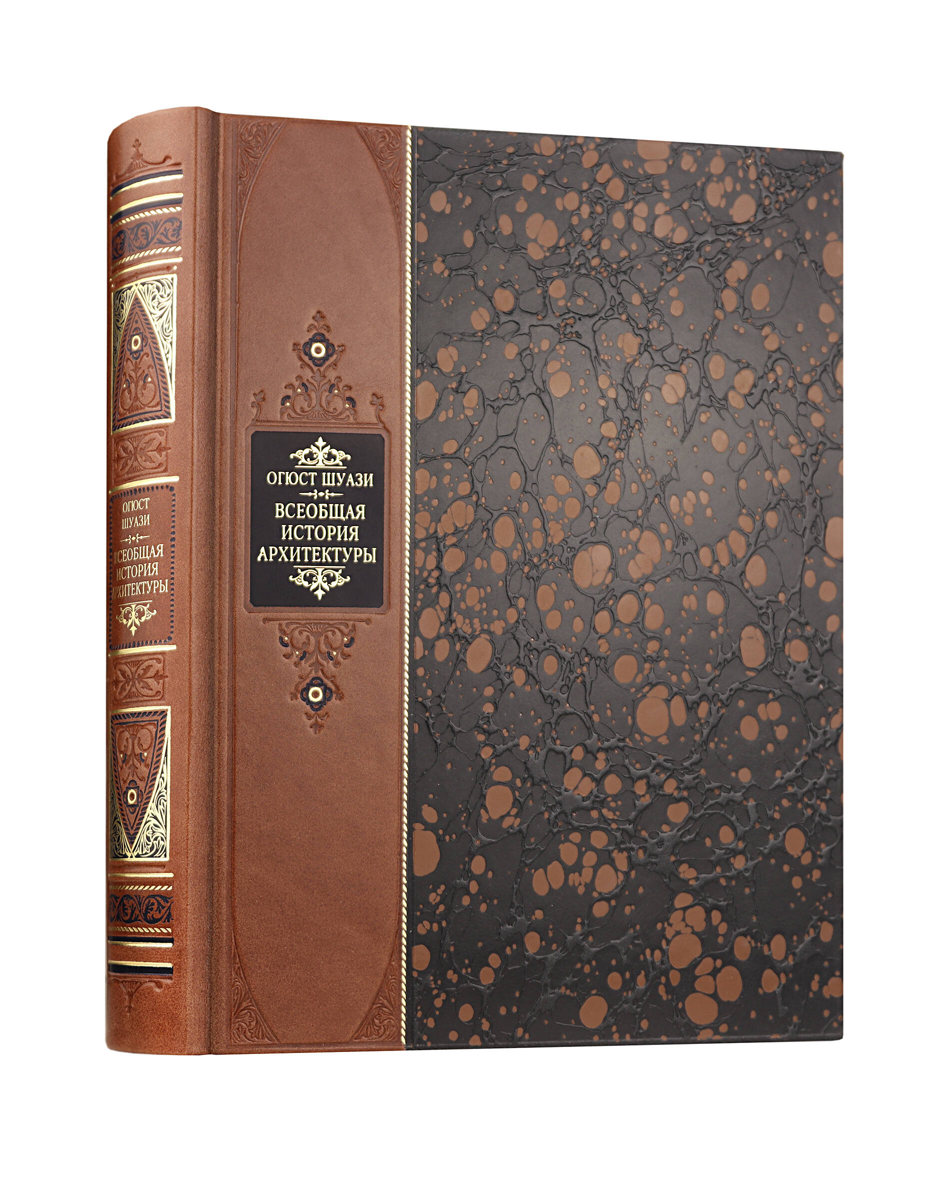 Всеобщая история архитектуры Огюста Шуази". Книга в коллекционном переплете из двух видов кожи с рисунком мраморной бумаги и с изящным тиснением в стиле 19 века