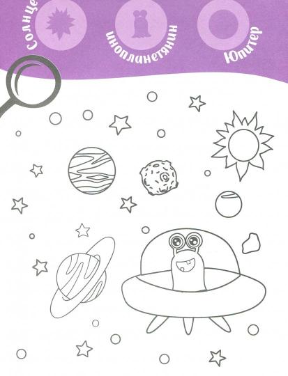Раскраска для маленьких сыщиков и следопытов - такого ещё не было! Раскрась картинку, найди нужные предметы и наклей наклейку. Раскрашивай карандашами, фломастерами и даже красками. Тебя ждут добрые картинки, яркие наклейки и незабываемые минуты веселья и творчества!