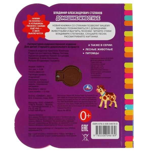 Музыкальная книга EVA «В. Степанов. Домашние животные» ТМ «УМка» - отличный подарок для малыша:- 1 звуковая кнопка-носик- 3 песенки на стихи Владимира Степанова: «Гусь», «Куры», «Коза»- яркие иллюстрации- фигурная вырубка- мягкая окантовкаРебёнок с